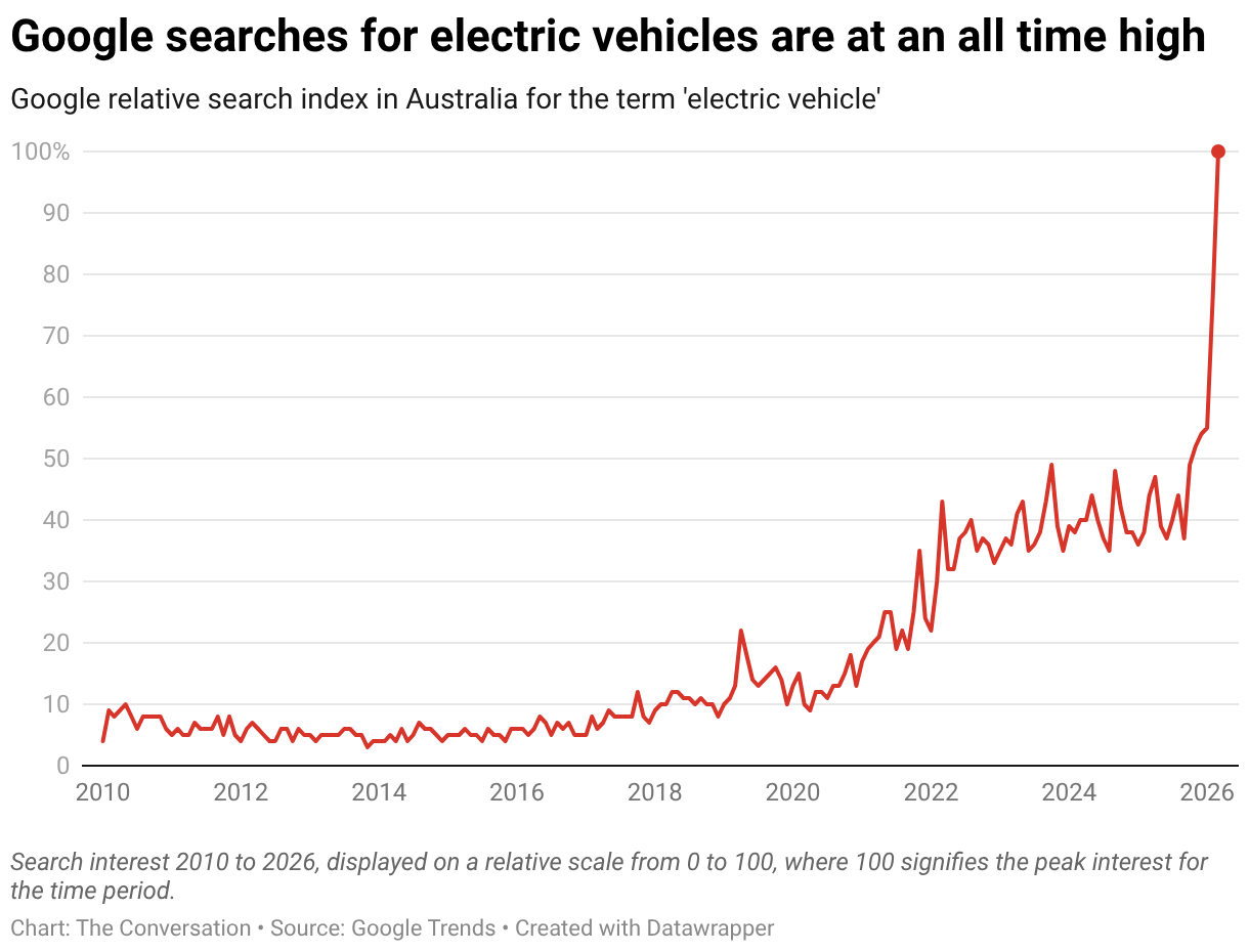 Google relative search index in Australia for the term 'electric vehicle'