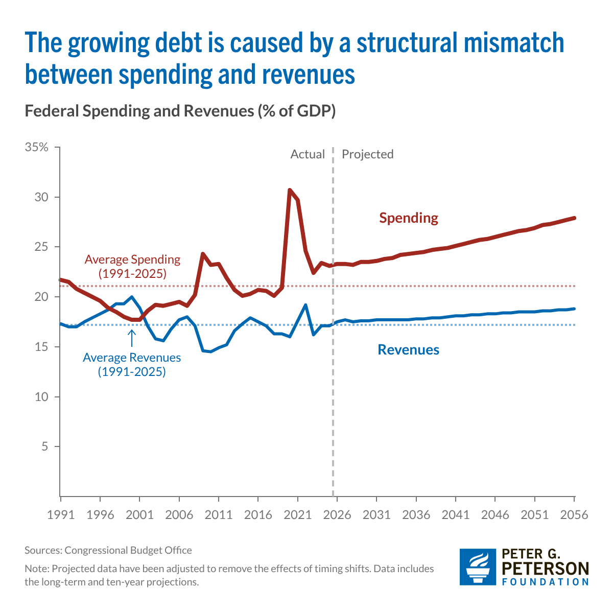 Federal Spending and Revenues (% of GDP)