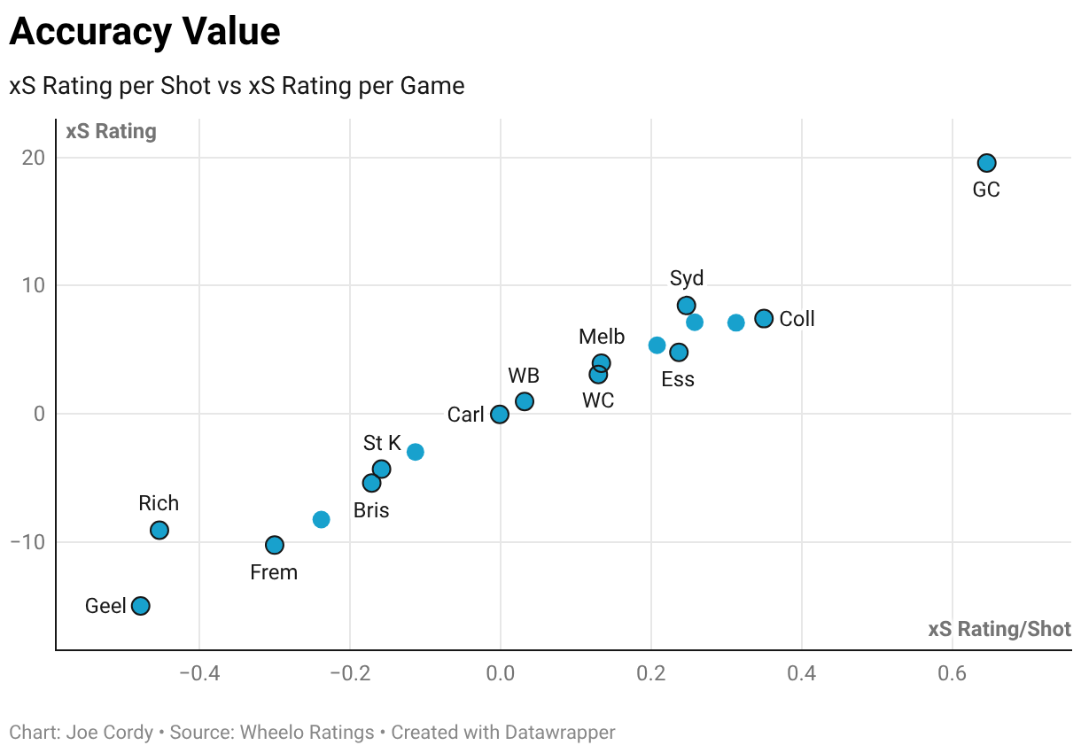 xS Rating per Shot vs xS Rating per Game