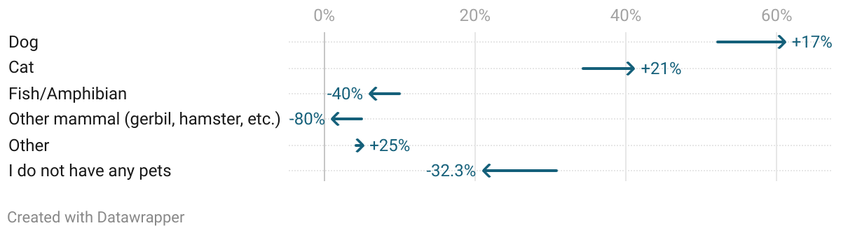 Q: Do you have any pets? — (% difference from 2018 to 2025 among 18-34 year olds)