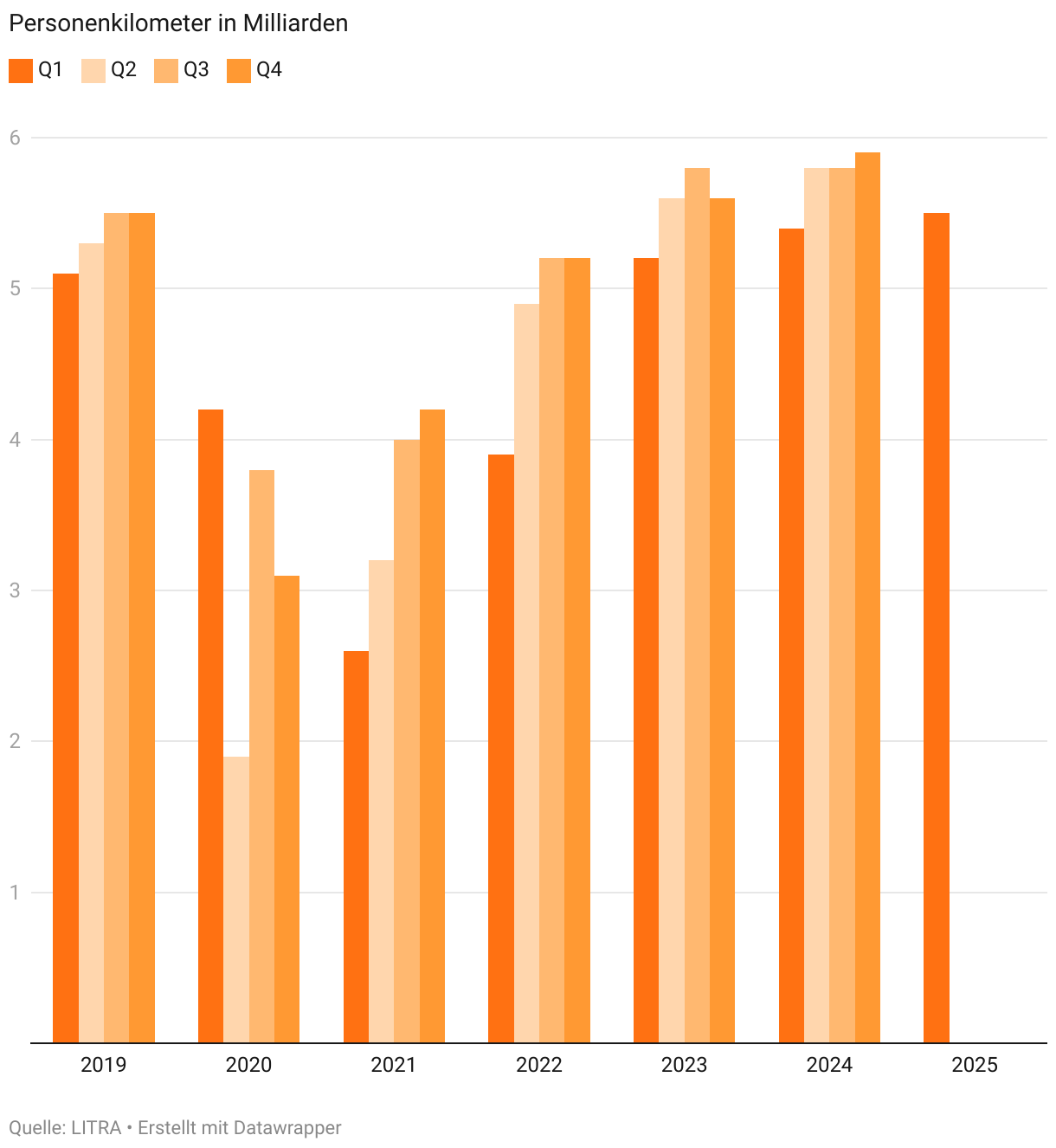 Personenkilometer in Milliarden
