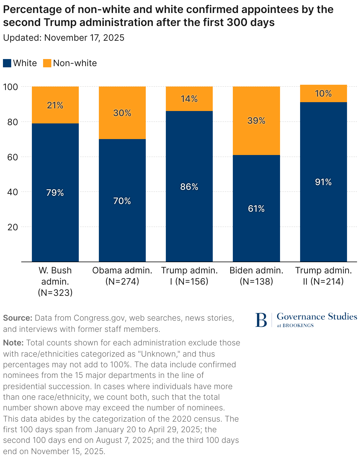 Percentage of non-white and white confirmed appointees by the second Trump administration after the first 300 days
