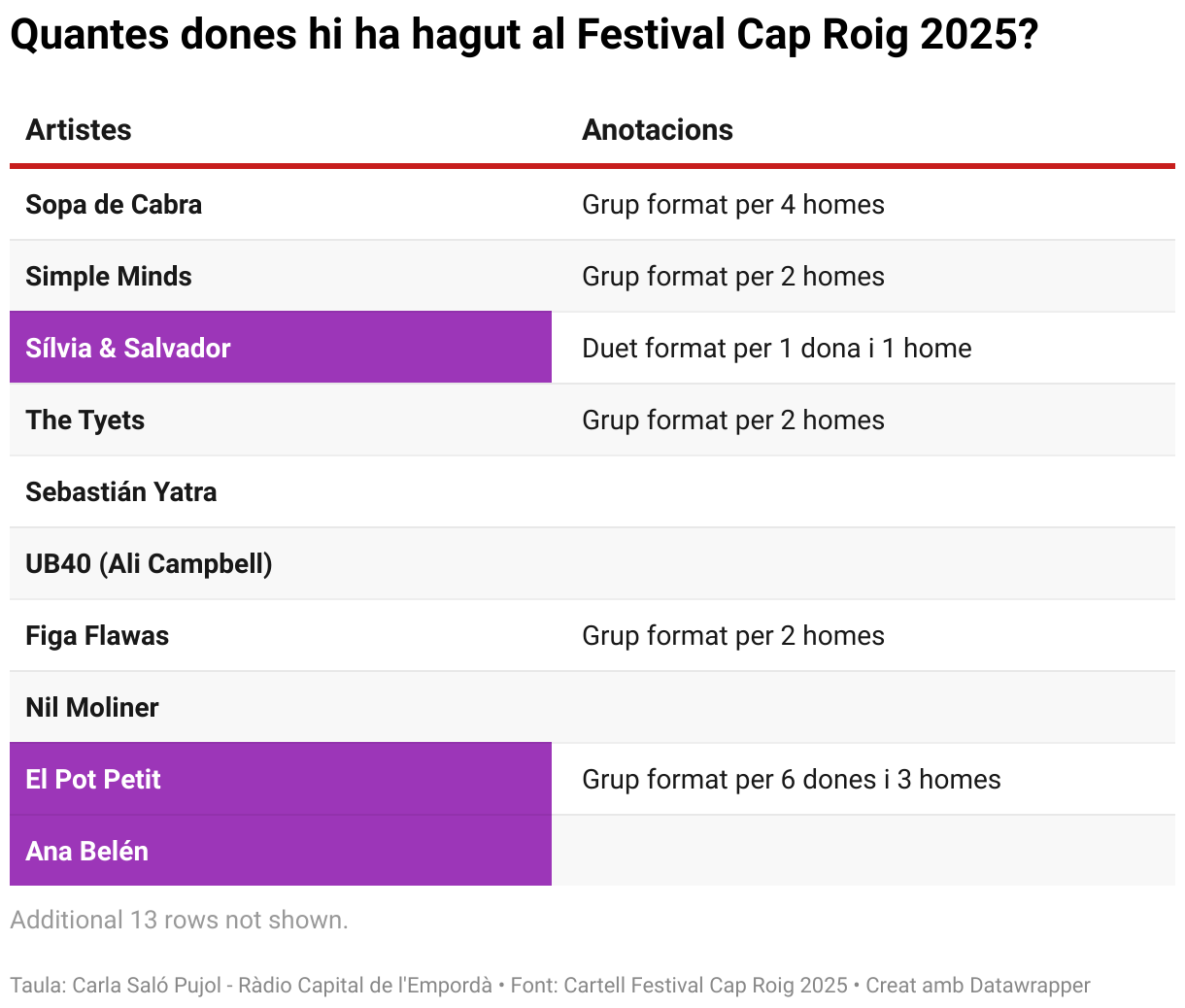 Quantes dones hi ha hagut al Festival Cap Roig 2025?