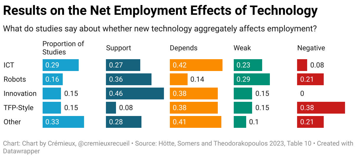 What do studies say about whether new technology aggregately affects employment?
