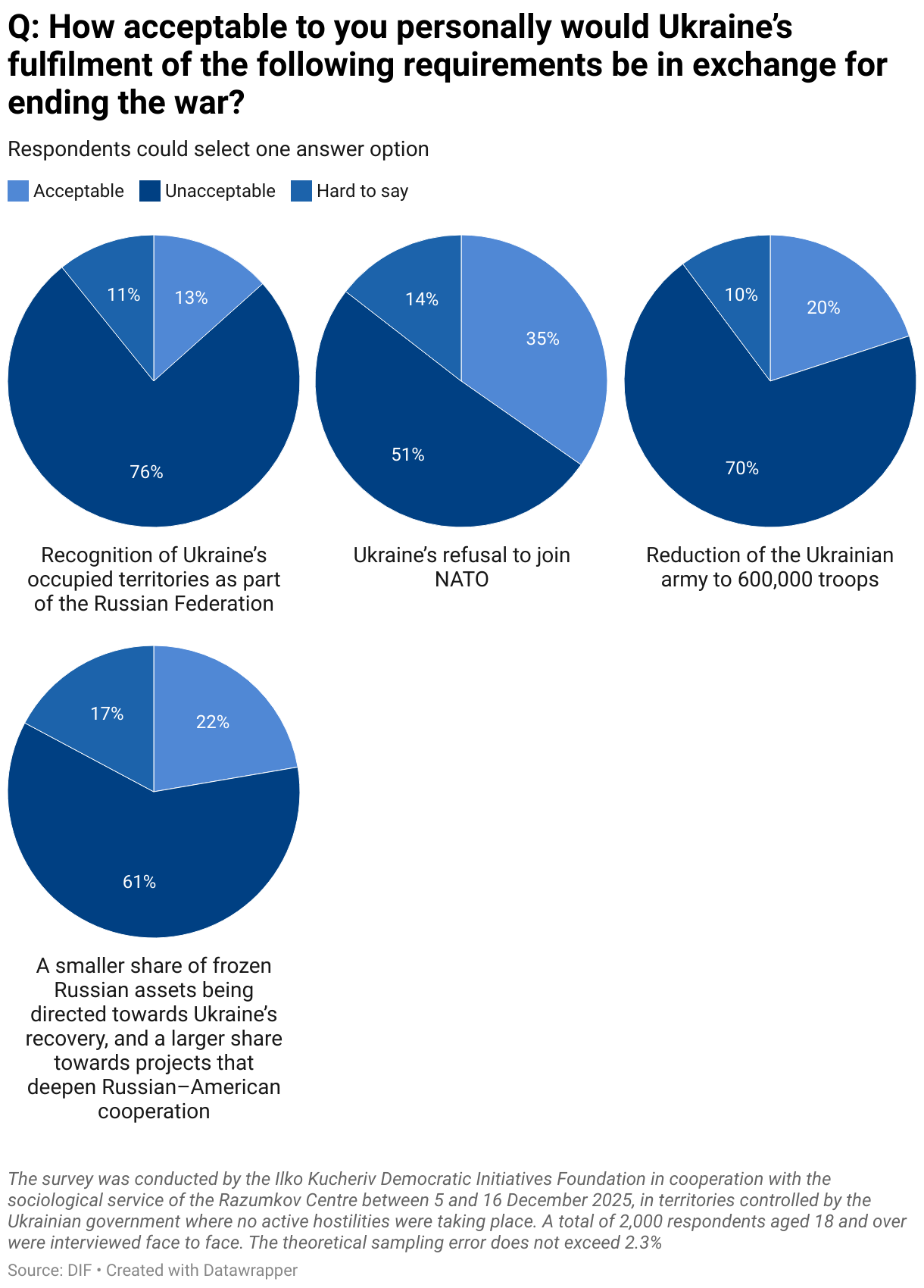 Q: How acceptable to you personally would Ukraine’s fulfilment of the following requirements be in exchange for ending the war?
