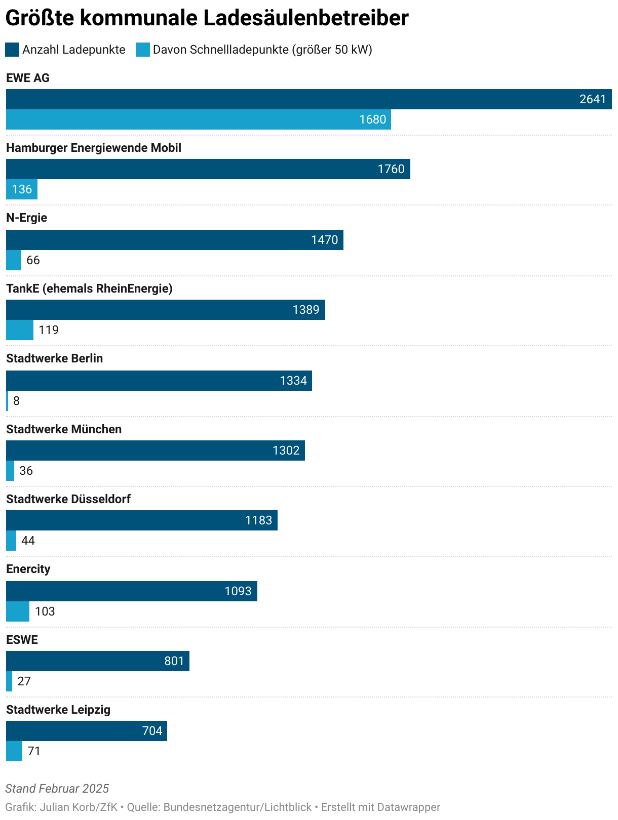 Größte kommunale Ladesäulenbetreiber
