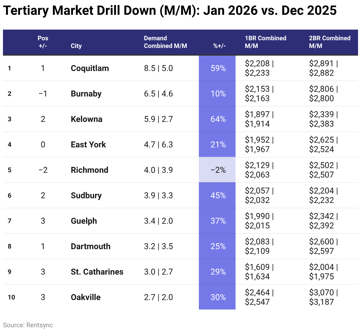 Tertiary Market Drill Down (M/M): Jan 2026 vs. Dec 2025