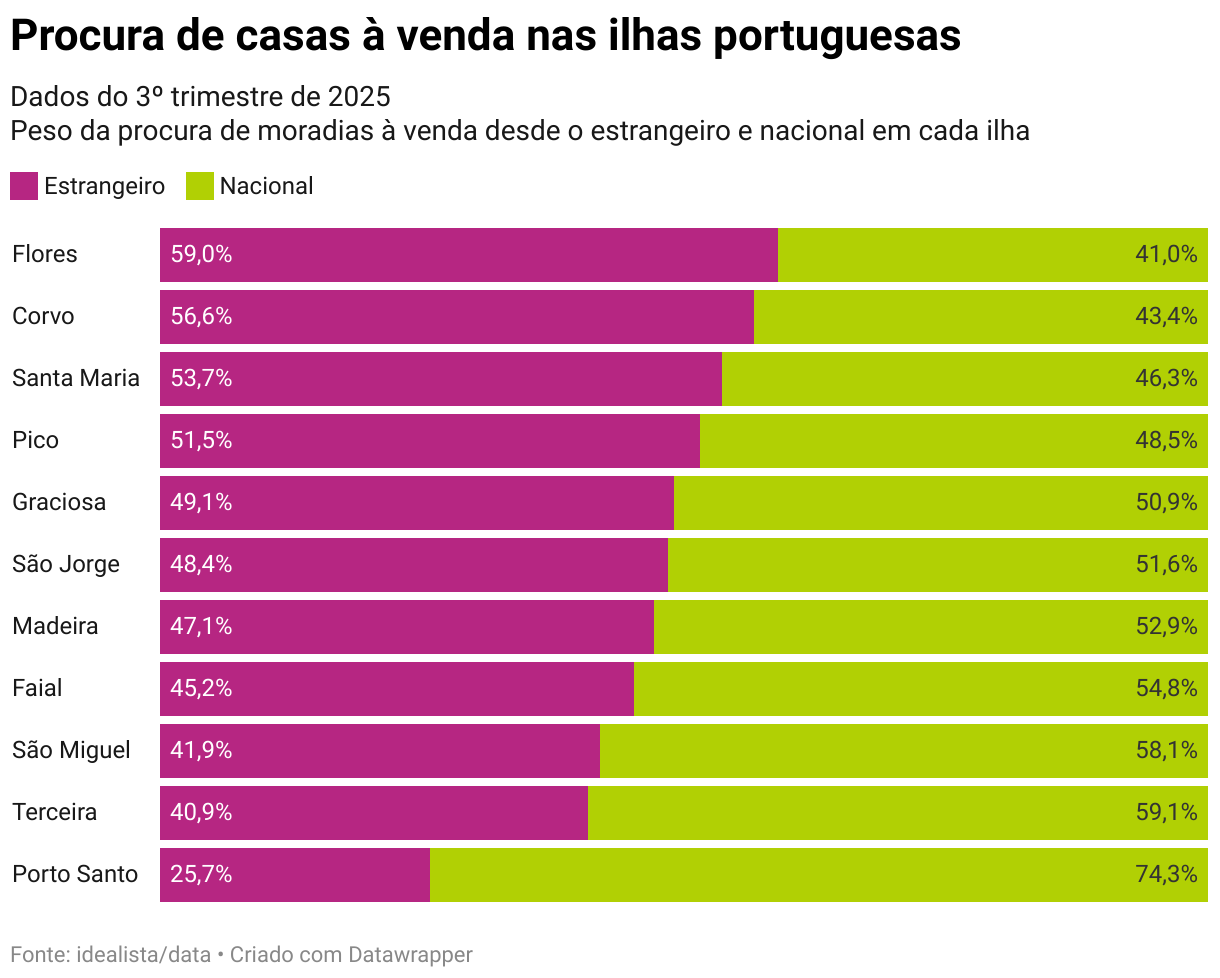 Dados do 3º trimestre de 2025 Peso da procura de moradias à venda desde o estrangeiro e nacional em cada ilha