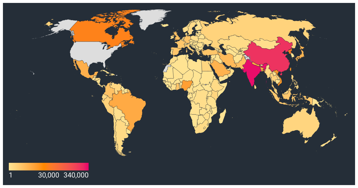 In 2024, some 1.1 million international students were enrolled in US colleges and universities. Together, students from India and China made up 54 percent of the total, with India leading at 331,602 (29 percent) and China at 277,398 (25 percent).