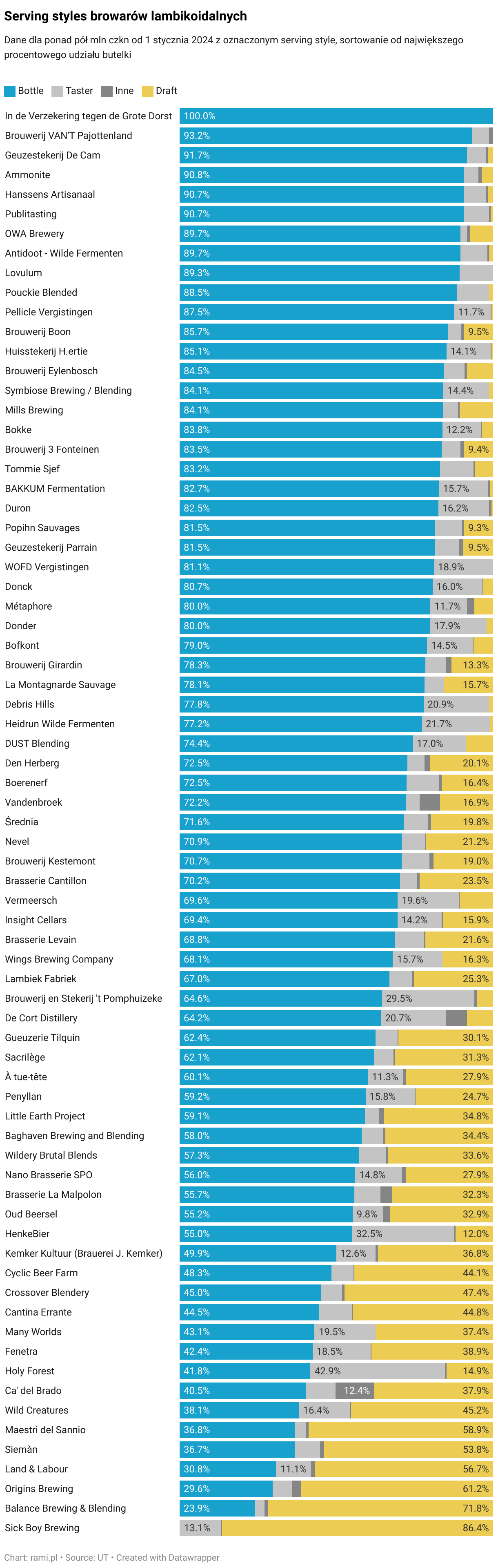Dane dla ponad pół mln czkn od 1 stycznia 2024 z oznaczonym serving style, sortowanie od największego procentowego udziału butelki