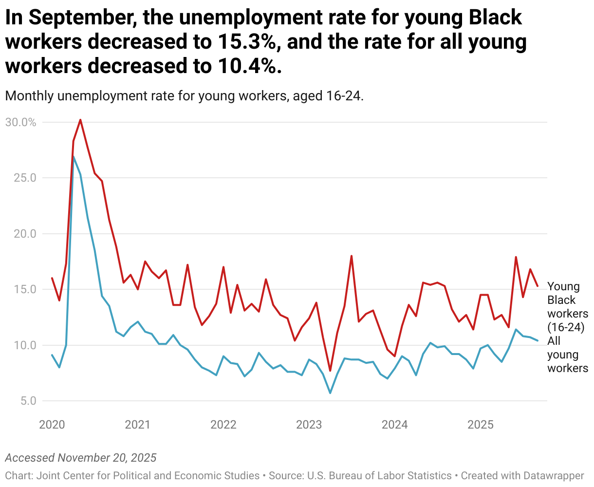 Monthly unemployment rate for young workers, aged 16-24.