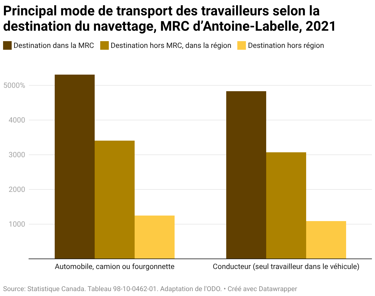 Principal mode de transport des travailleurs selon la destination du navettage, MRC d’Antoine-Labelle, 2021