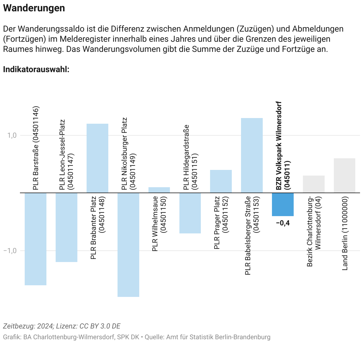 Der Wanderungssaldo ist die Differenz zwischen Anmeldungen (Zuzügen) und Abmeldungen (Fortzügen) im Melderegister innerhalb eines Jahres und über die Grenzen des jeweiligen Raumes hinweg. Das Wanderungsvolumen gibt die Summe der Zuzüge und Fortzüge an.