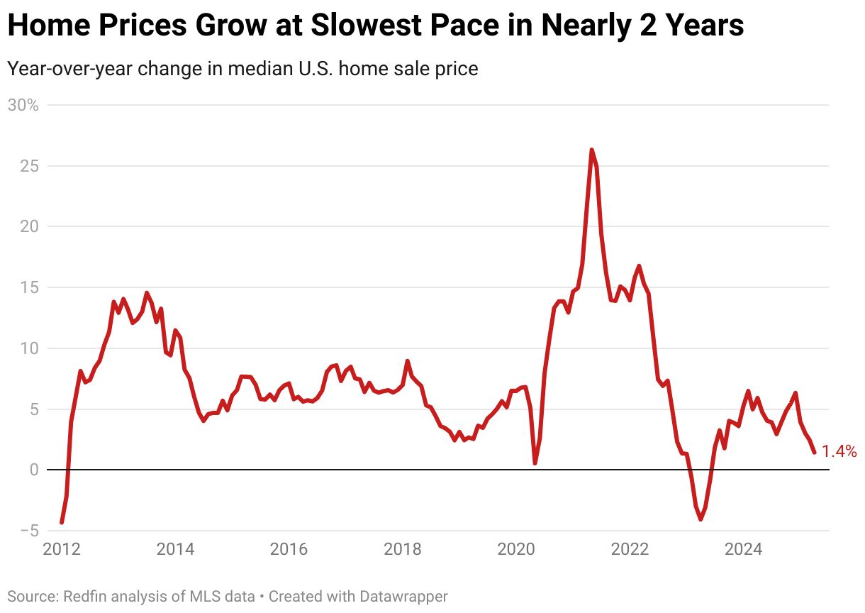 Year-over-year change in median U.S. home sale price