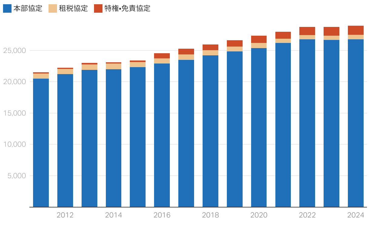 ジュネーブに拠点を置く国際機関の職員数と組織種類(※)別の内訳