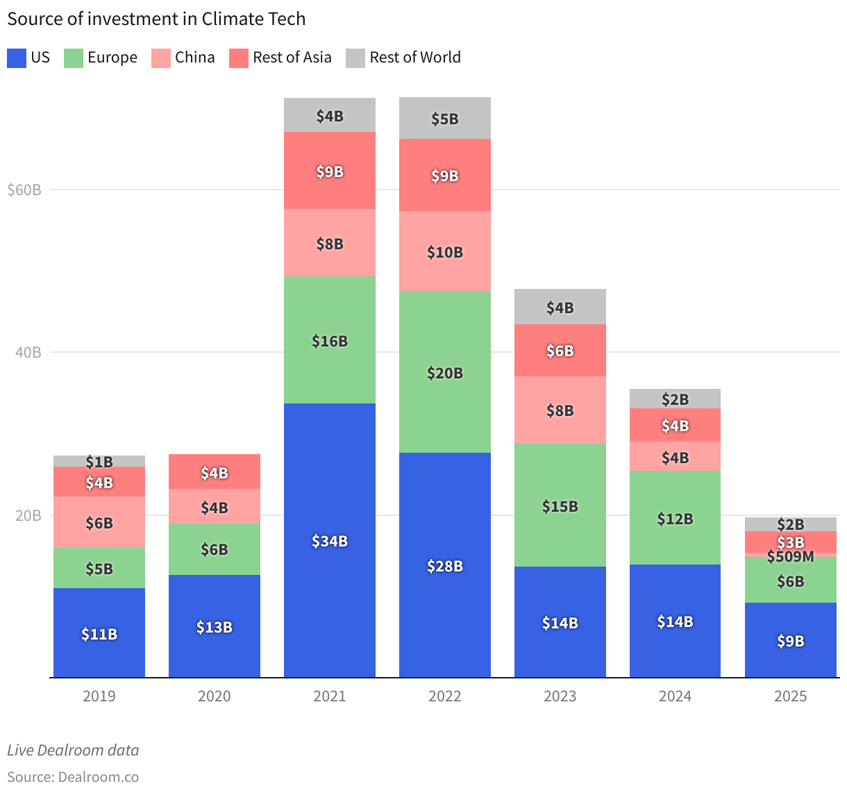 "This chart represents the European Deep tech VC investment by stage from 2017 to 2023. The data is grouped into different investment stages: $0-1m (pre-seed), $1-4m (seed), $4-15m (series A), $15-40m (series B), $40-100m (series C), $100-250m (mega rounds), and $250m+ (mega+). Each column represents a specific quarter and shows the total investment amount in millions of dollars. The chart provides a visual representation of the investment trends over time, highlighting the fluctuations and growth in each investment stage. It allows users to compare the investment amounts between different stages and observe the overall patterns in Deep tech VC funding in Europe.