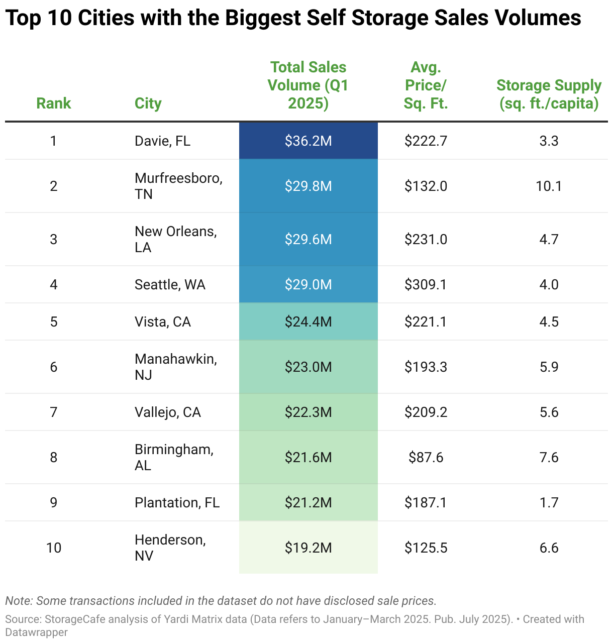 Top 10 Cities with the Biggest Self Storage Sales Volumes