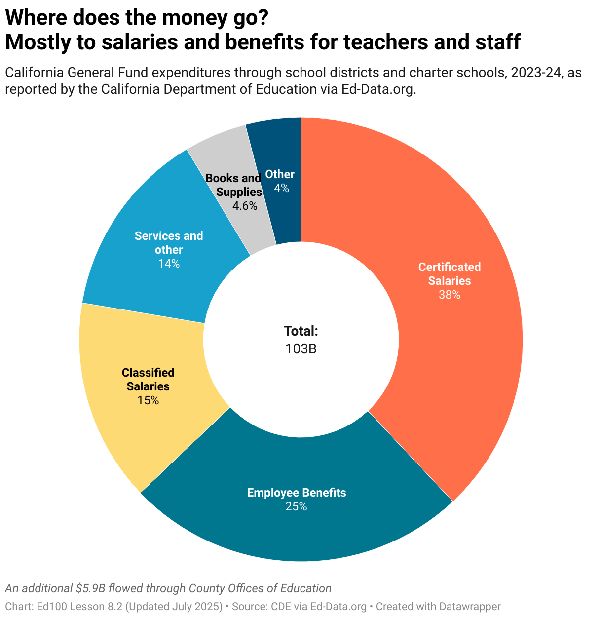 California General Fund expenditures through school districts and charter schools, 2023-24, as reported by the California Department of Education via Ed-Data.org.