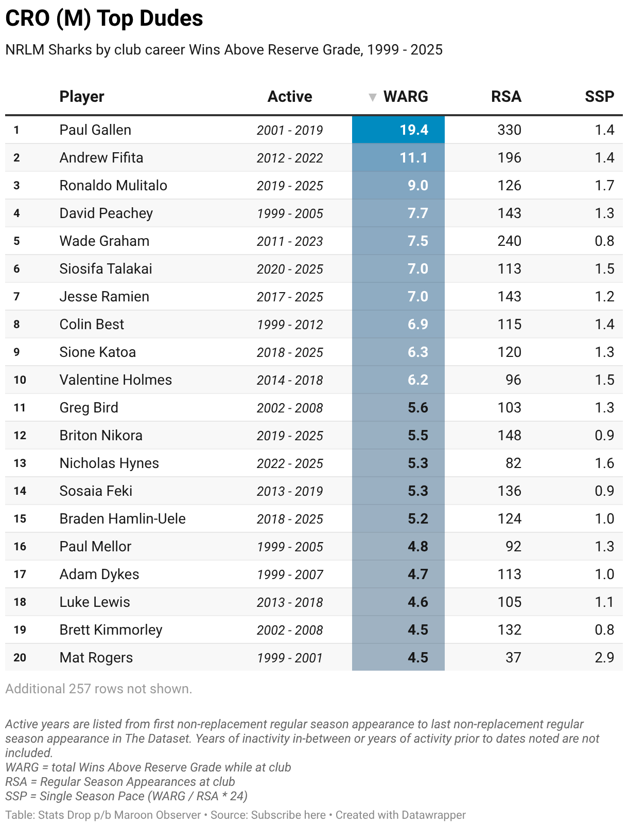 NRLM Sharks by club career Wins Above Reserve Grade, 1999 - 2025