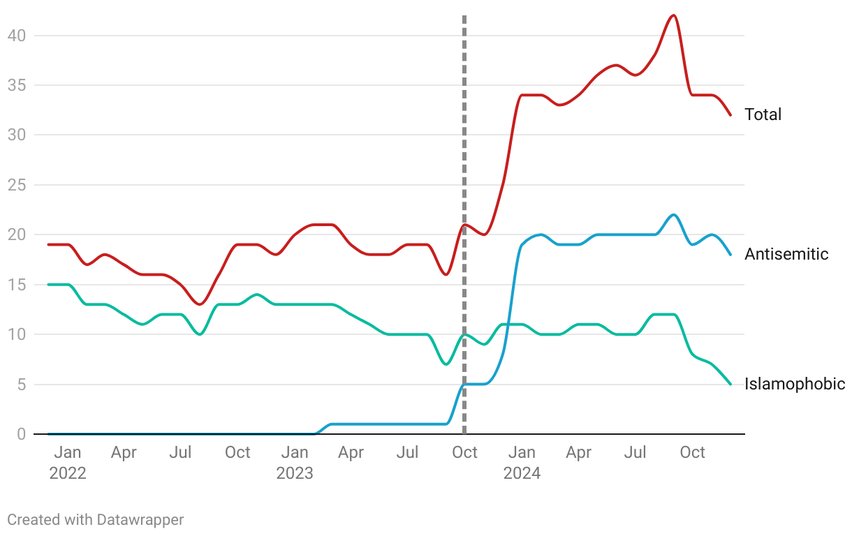 Number of recorded faith-related hate crime offences in the previous 12 months