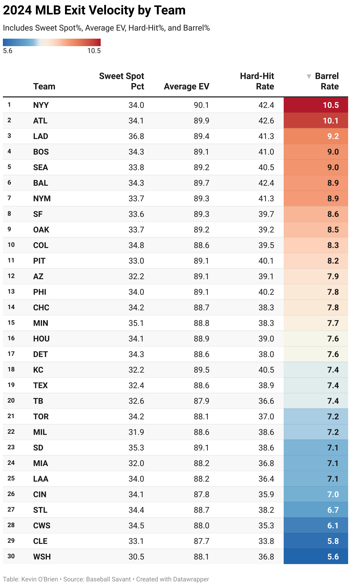 Includes Sweet Spot%, Average EV, Hard-Hit%, and Barrel%