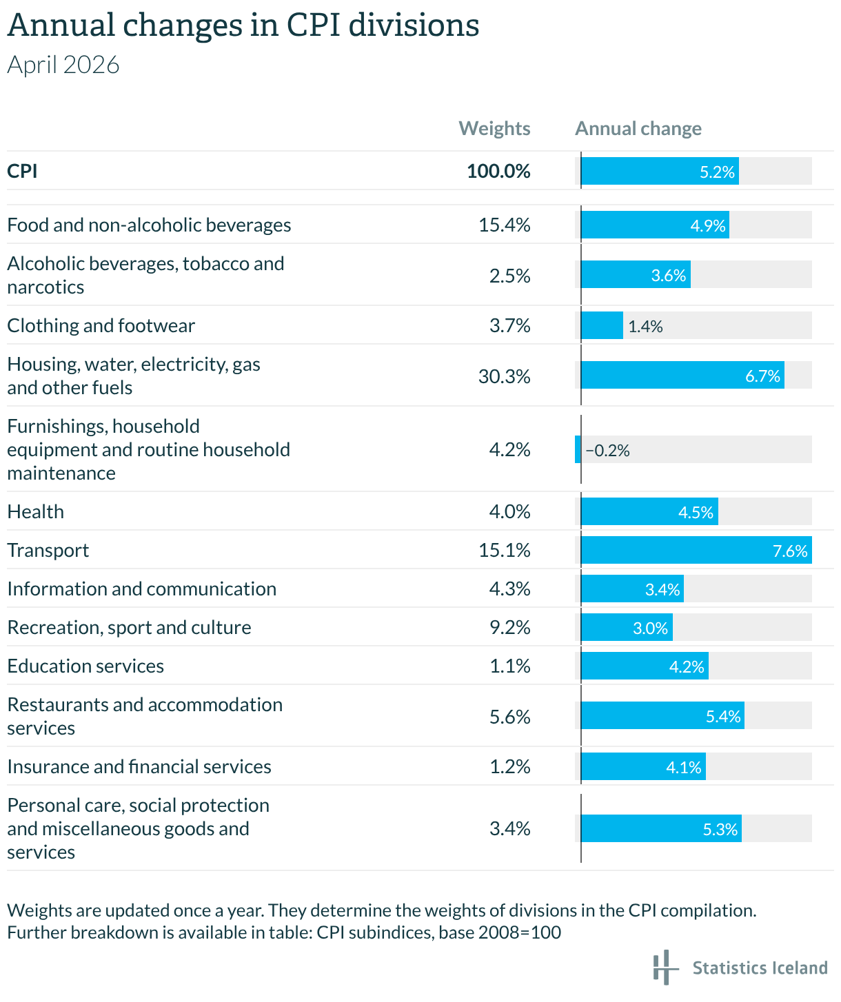 Annual changes in CPI divisions