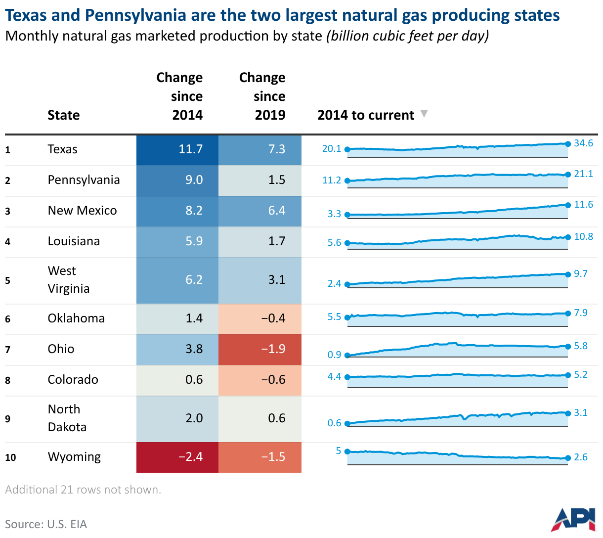 Monthly natural gas marketed production by state (billion cubic feet per day)