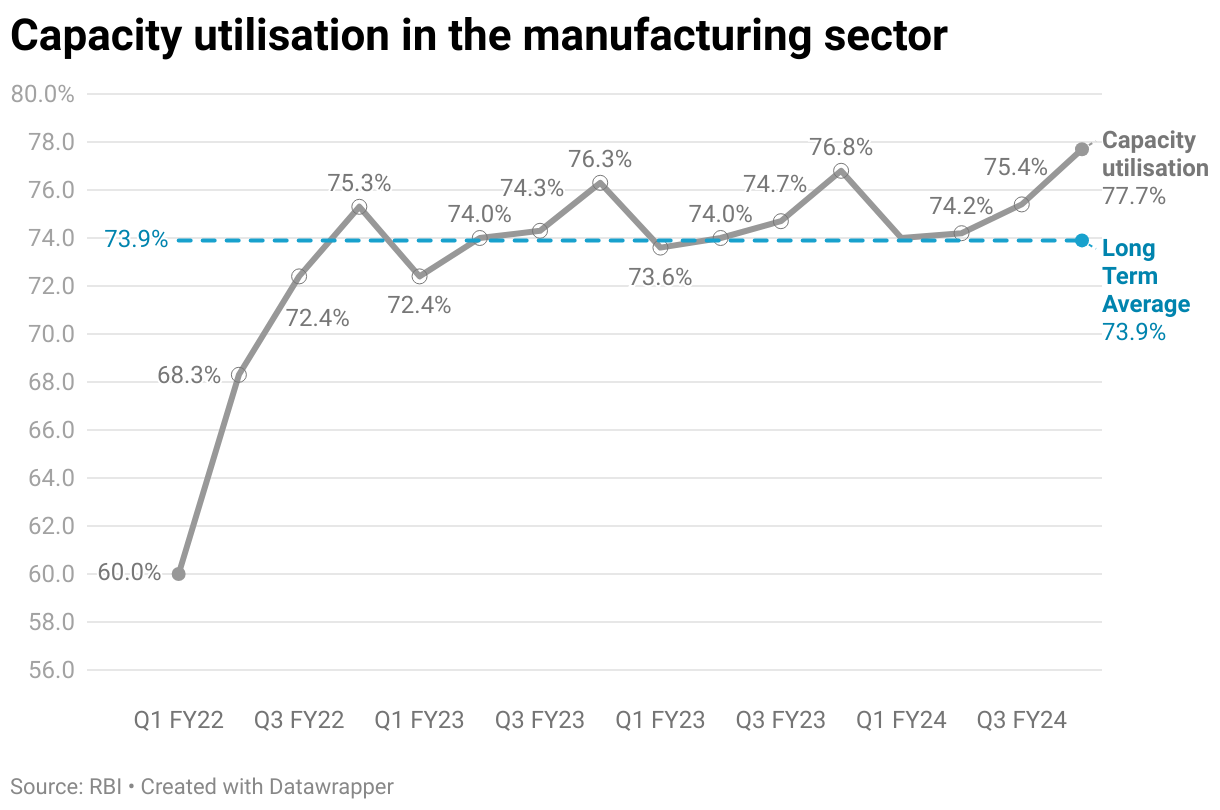Capacity utilisation in the manufacturing sector