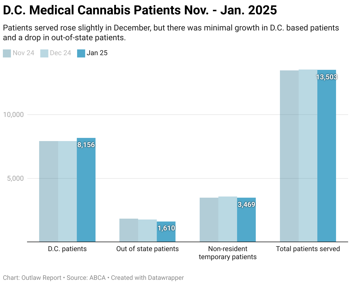 Patients served rose slightly in December, but there was minimal growth in D.C. based patients and a drop in out-of-state patients.
