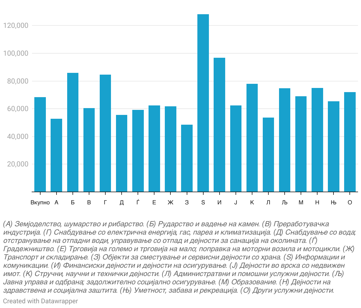 (А) Земјоделство, шумарство и рибарство. (Б) Рударство и вадење на камен. (В) Преработувачка индустрија. (Г) Снабдување со електрична енергија, гас, пареа и климатизација. (Д) Снабдување со вода; отстранување на отпадни води, управување со отпад и дејности за санација на околината. (Ѓ) Градежништво. (Е) Трговија на големо и трговија на мало; поправка на моторни возила и мотоцикли. (Ж) Транспорт и складирање. (З) Објекти за сместување и сервисни дејности со храна. (Ѕ) Информации и комуникации. (И) Финансиски дејности и дејности на осигурување. (Ј) Дејности во врска со недвижен имот. (К) Стручни, научни и технички дејности. (Л) Администратвни и помошни услужни дејности. (Љ) Јавна управа и одбрана; задолжително социјално осигурување. (М) Образование. (Н) Дејности на здравствена и социјална заштита. (Њ) Уметност, забава и рекреација. (О) Други услужни дејности.