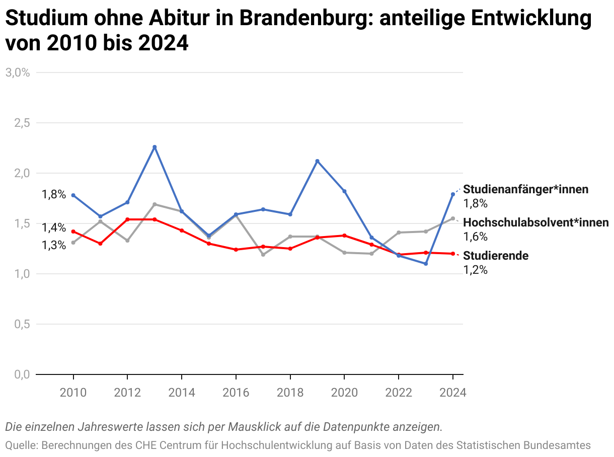 Studium ohne Abitur in Brandenburg: anteilige Entwicklung von 2010 bis 2024
