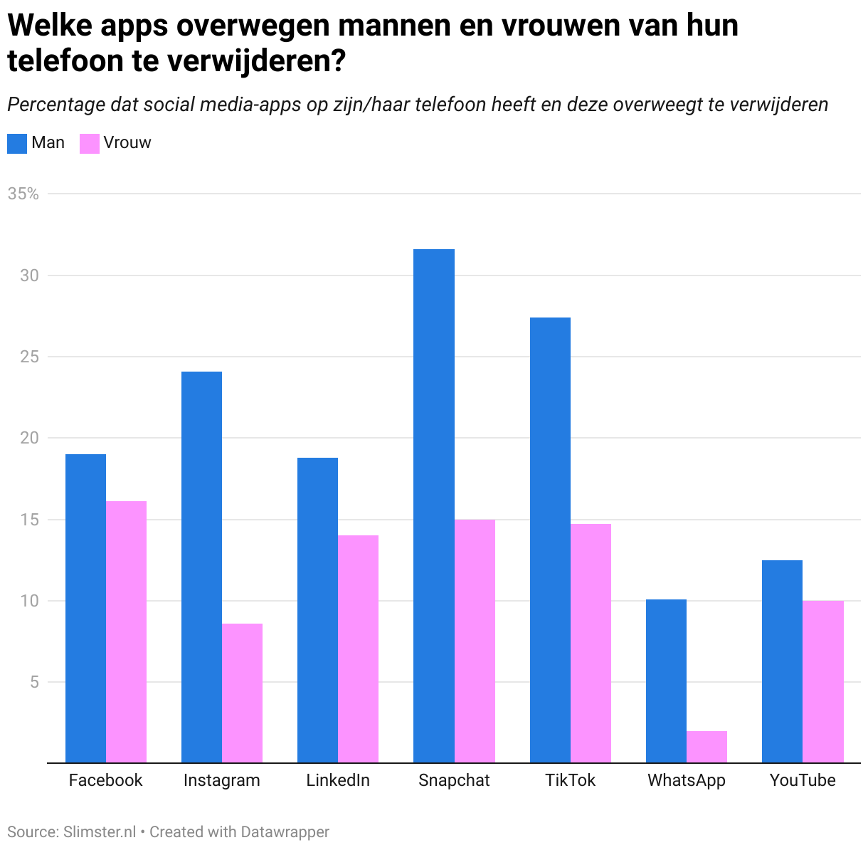 Percentage dat social media-apps op zijn/haar telefoon heeft en deze overweegt te verwijderen