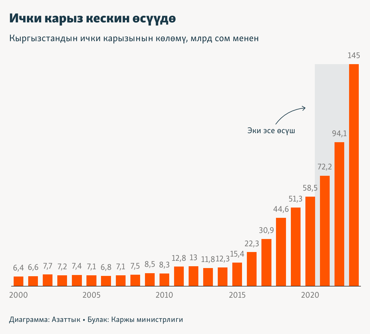 Кыргызстандын ички карызынын көлөмү, млрд сом менен