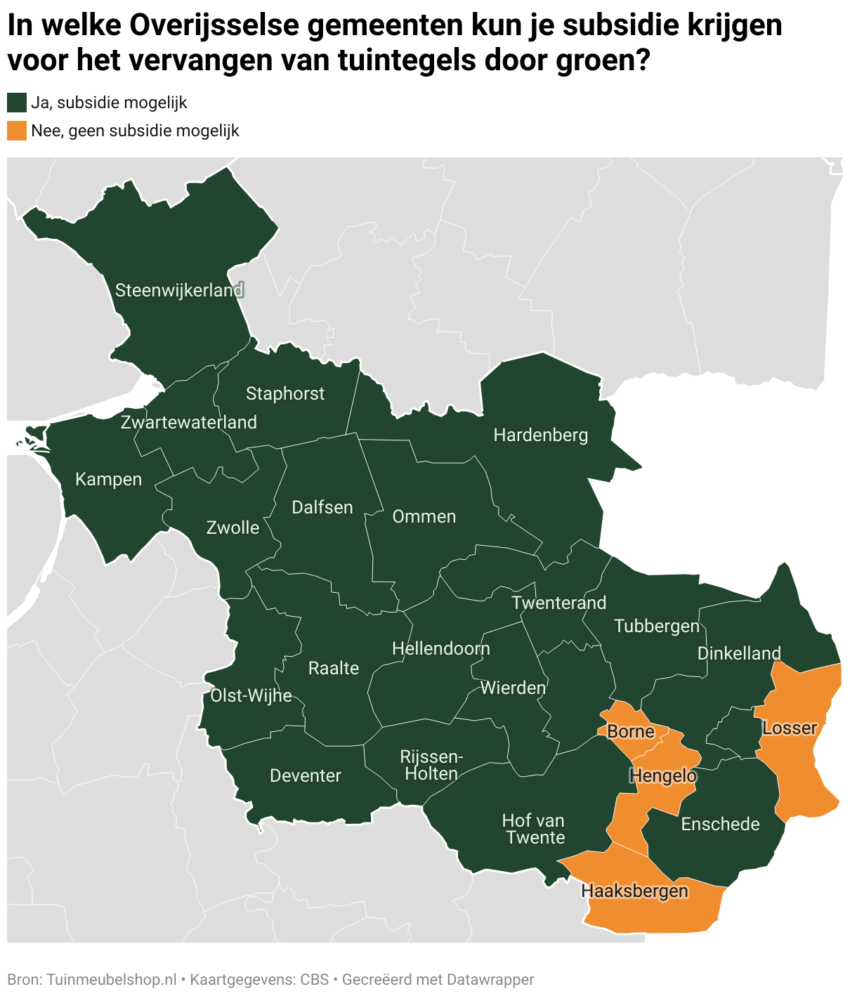In welke Overijsselse gemeenten kun je subsidie krijgen voor het vervangen van tuintegels door groen?