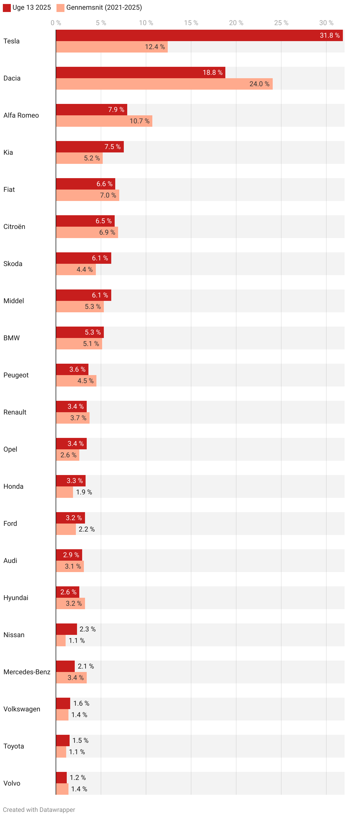Andel af danskere, der aldrig kunne drømme om at købe bilmærket.