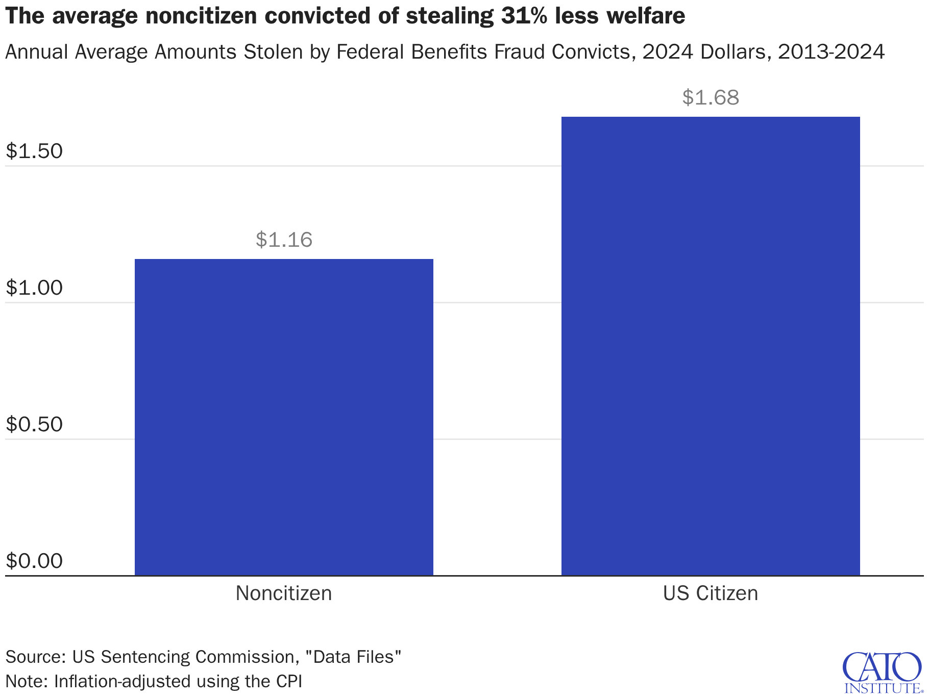 The average noncitizen convicted of stealing 31% less welfare