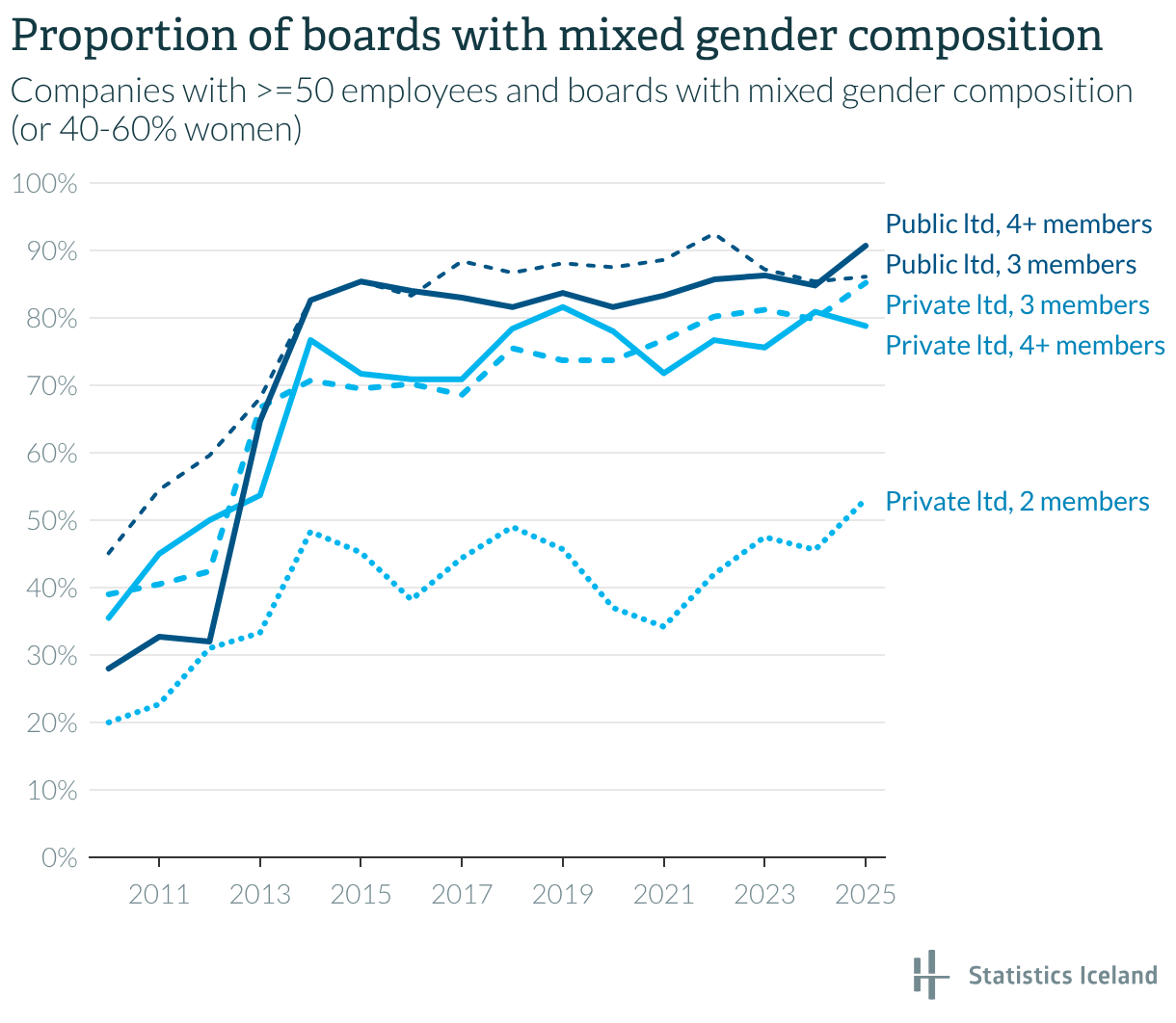 Companies with >=50 employees and boards with mixed gender composition (or 40-60% women)