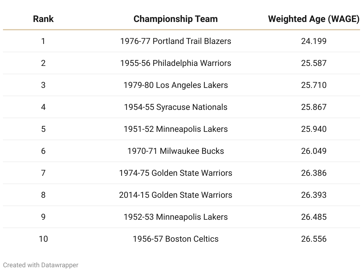 Youngest NBA Championship Teams