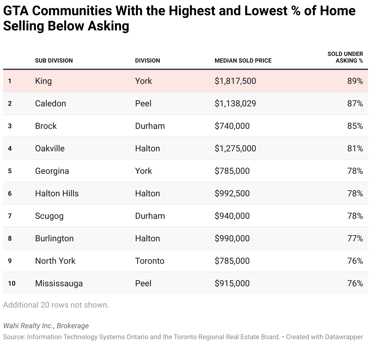 GTA Communities With the Highest and Lowest % of Home Selling Below Asking