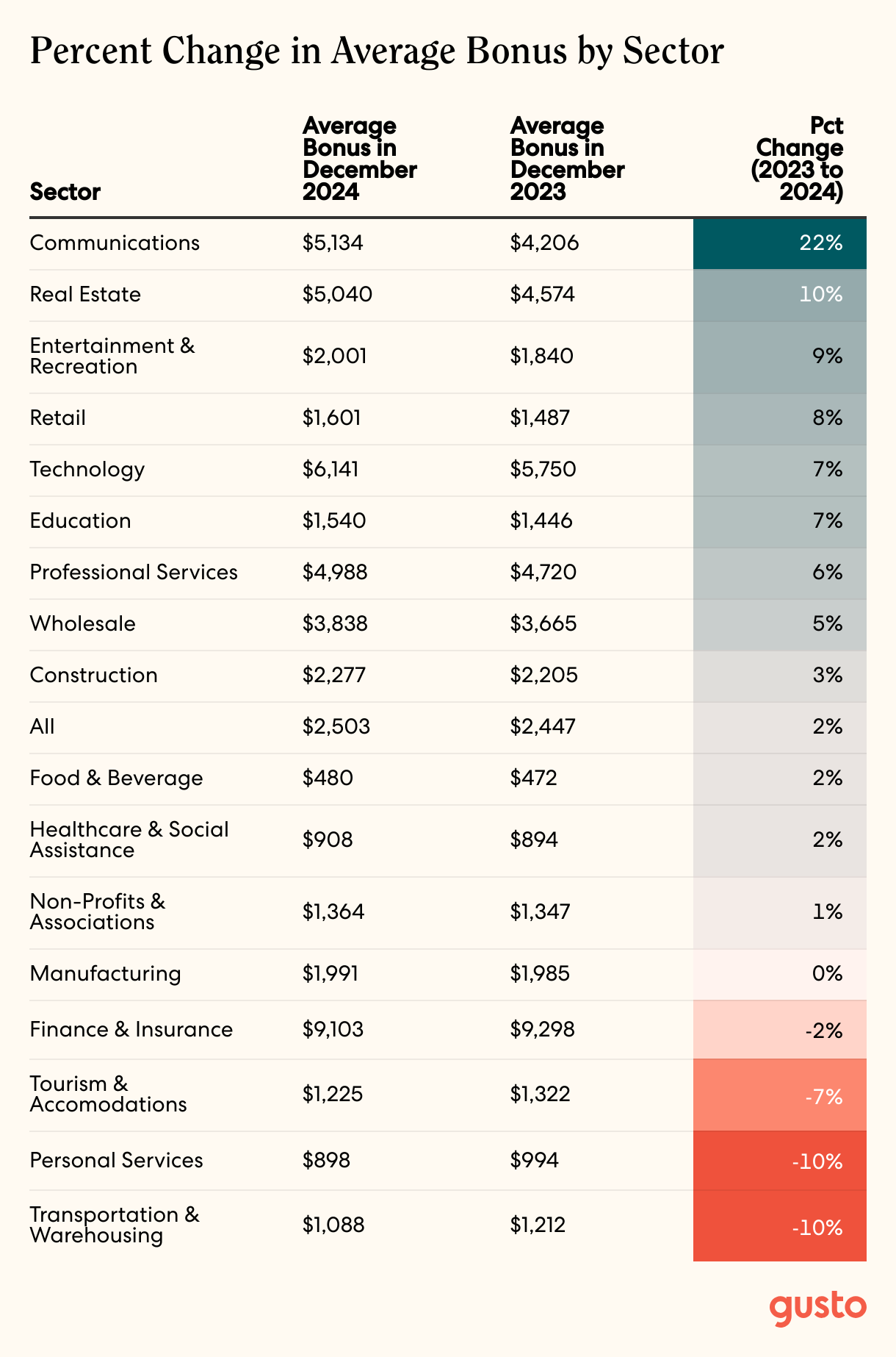Percent Change in Average Bonus by Sector