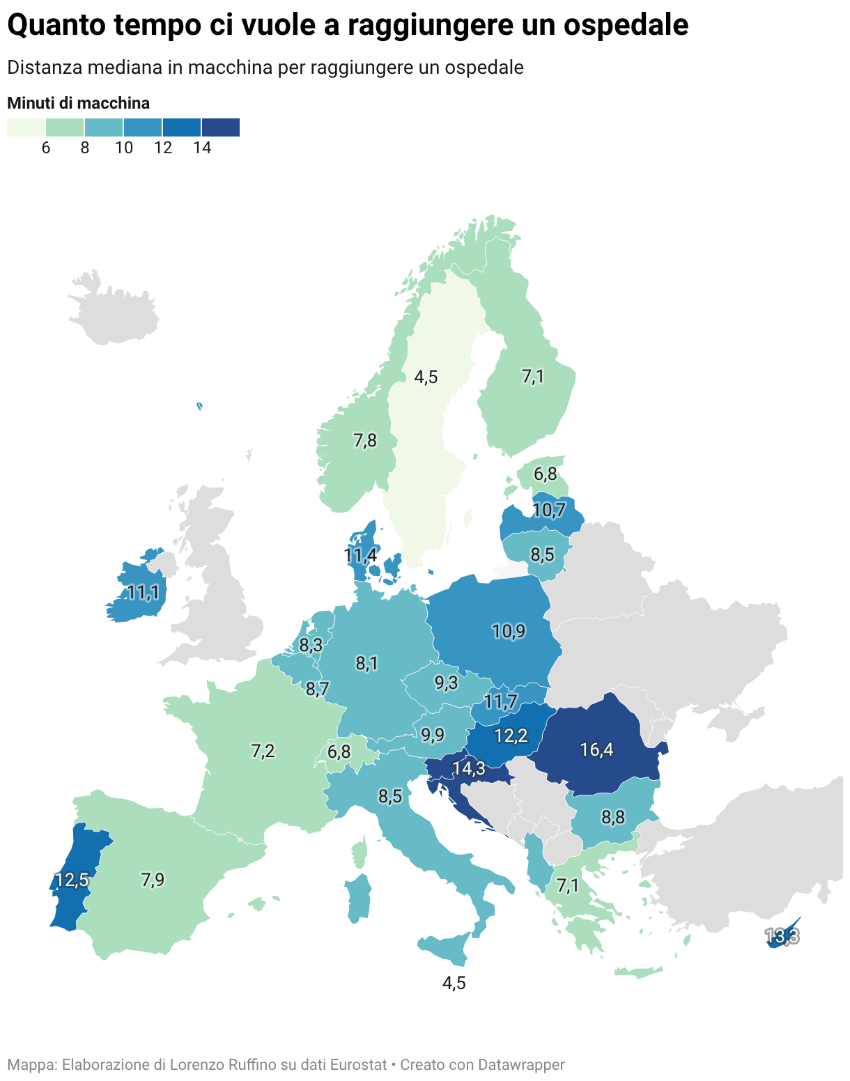 Distanza mediana in macchina per raggiungere un ospedale