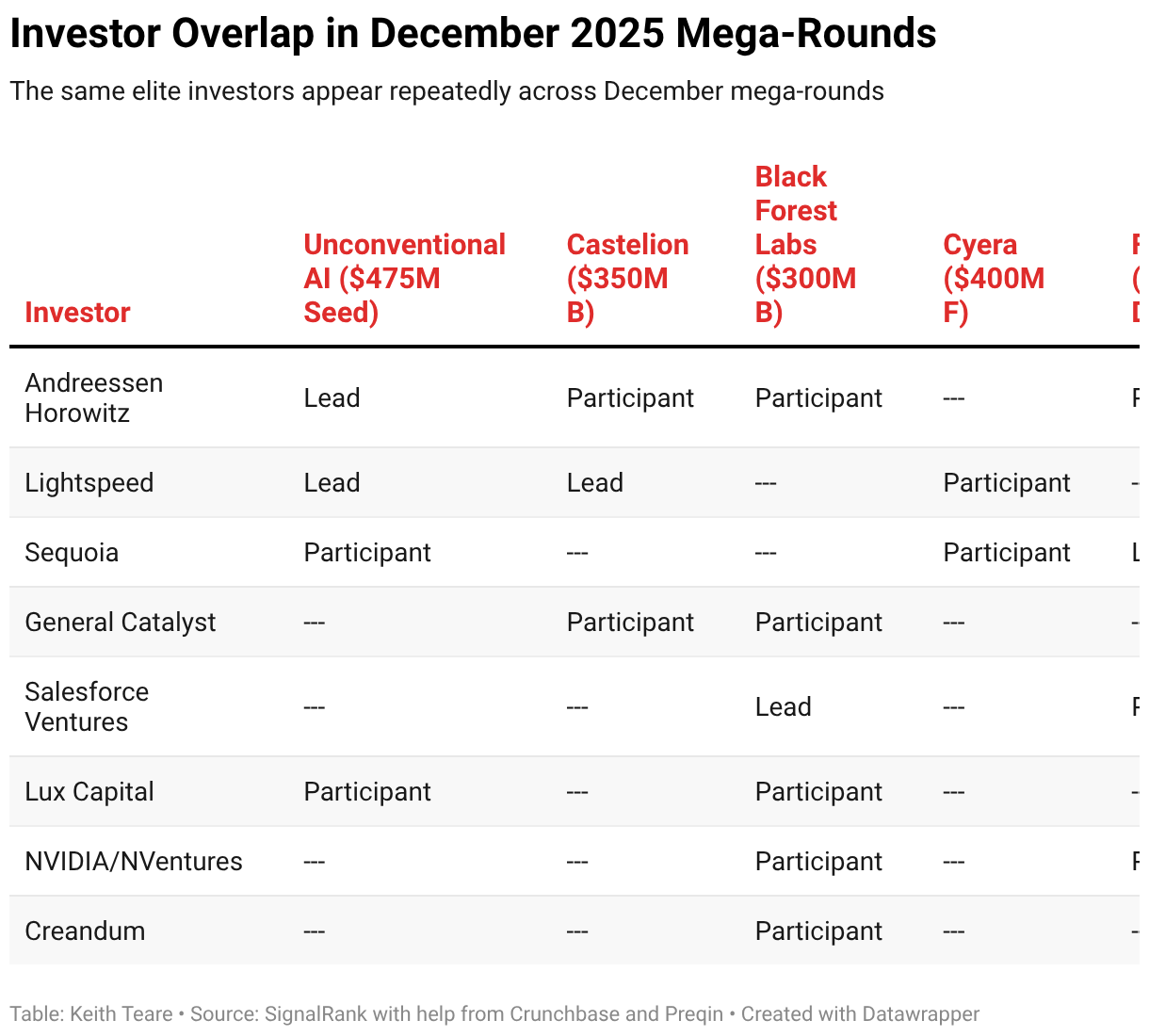 The same elite investors appear repeatedly across December mega-rounds