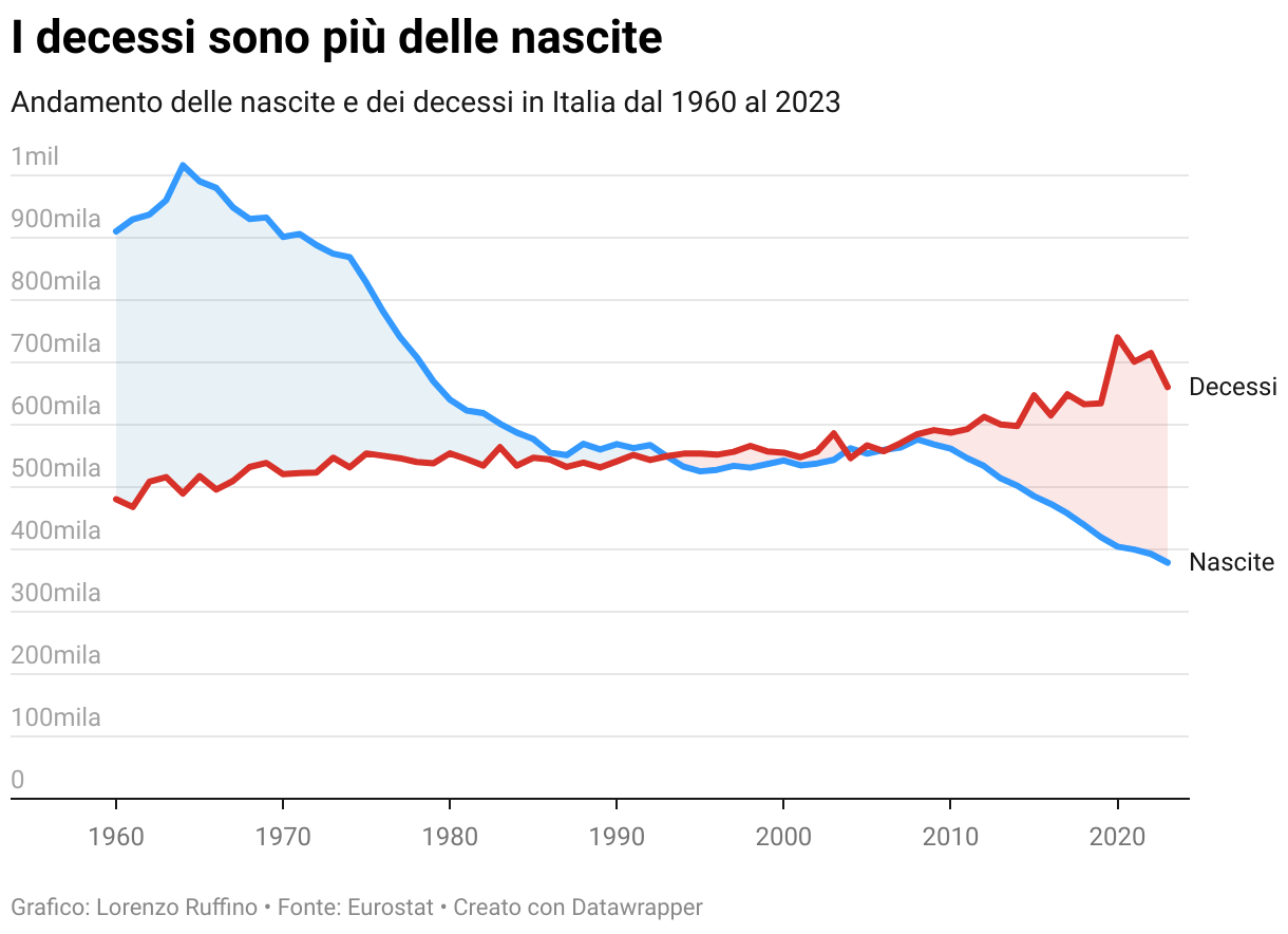 Andamento delle nascite e dei decessi in Italia dal 1960 al 2023