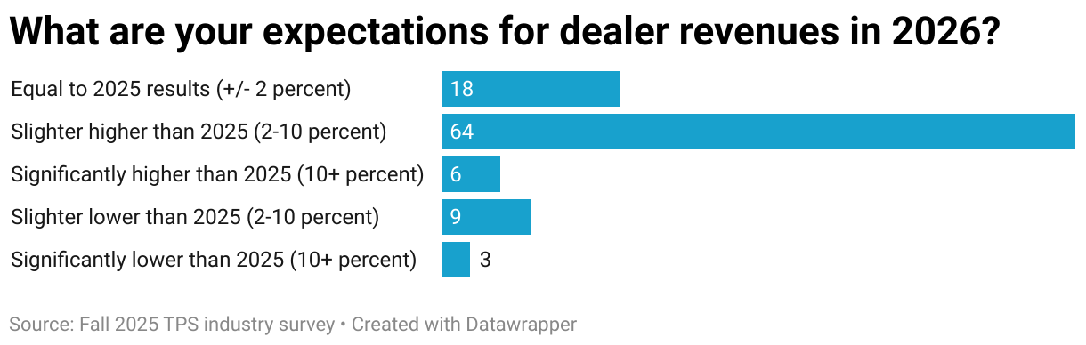 How dealer responders project the dealer market to perform in 2026 in a November 2025 TPS reader survey.