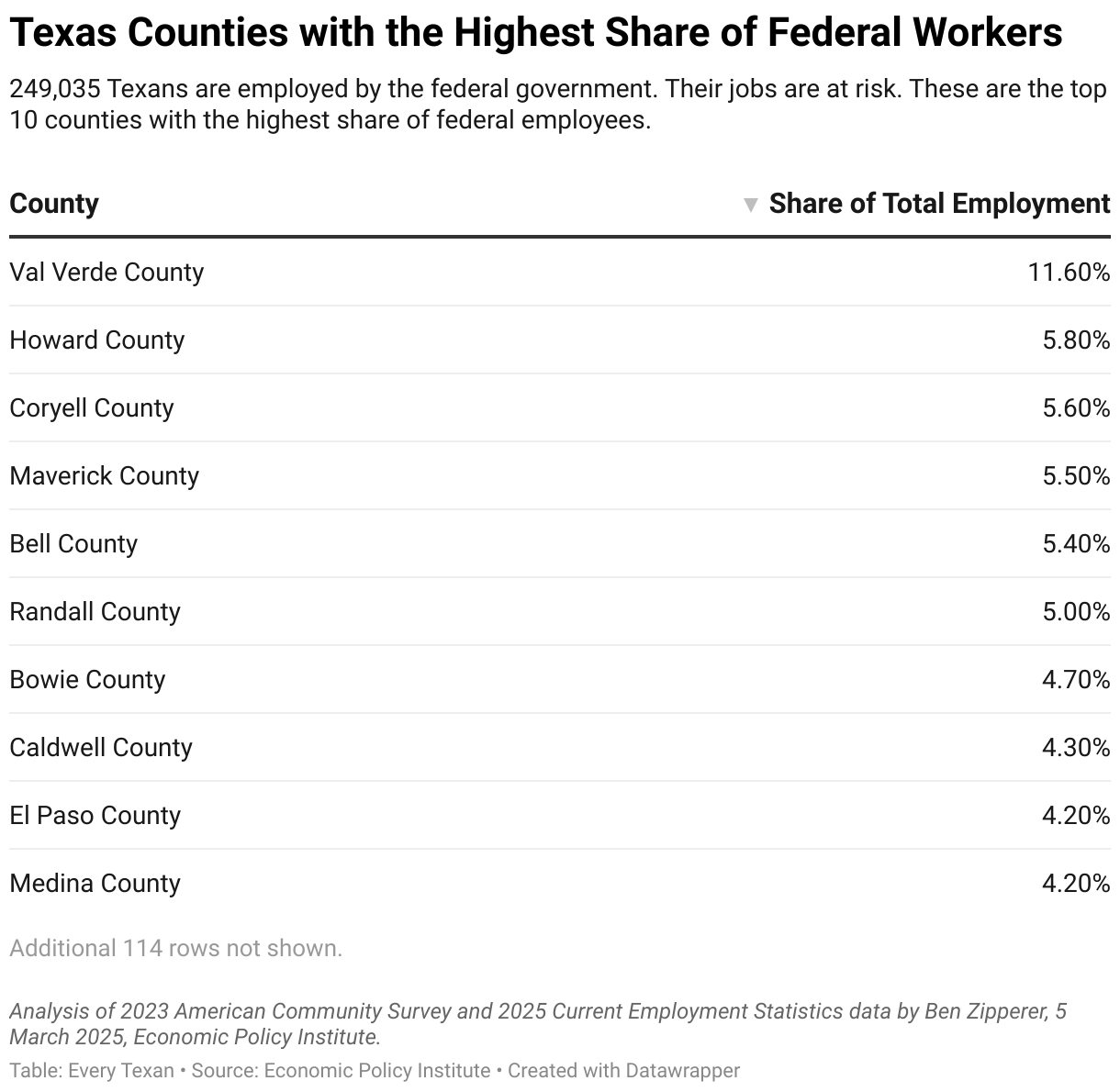 249,035 Texans are employed by the federal government. Their jobs are at risk. These are the top 10 counties with the highest share of federal employees.