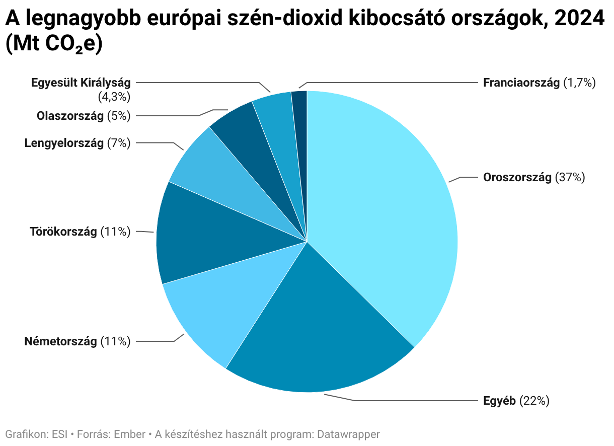 A legnagyobb európai szén-dioxid kibocsátó országok, 2024 (Mt CO₂e)
