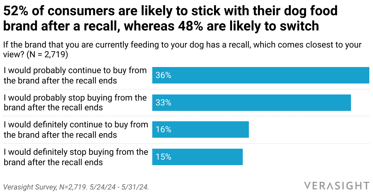 If the brand that you are currently feeding to your dog has a recall, which comes closest to your view? (N = 2,719)