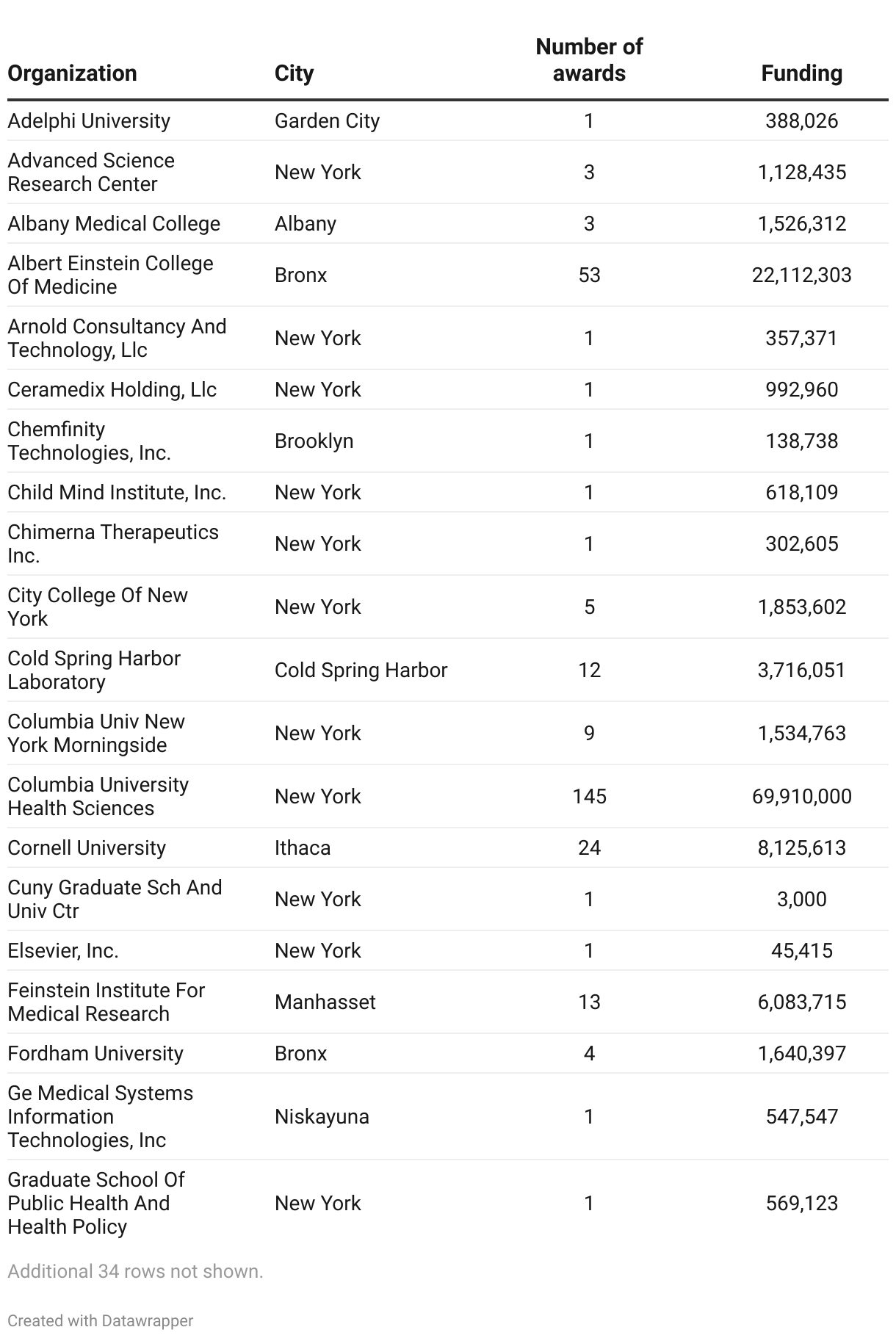 NIH Awards to New York research institutions