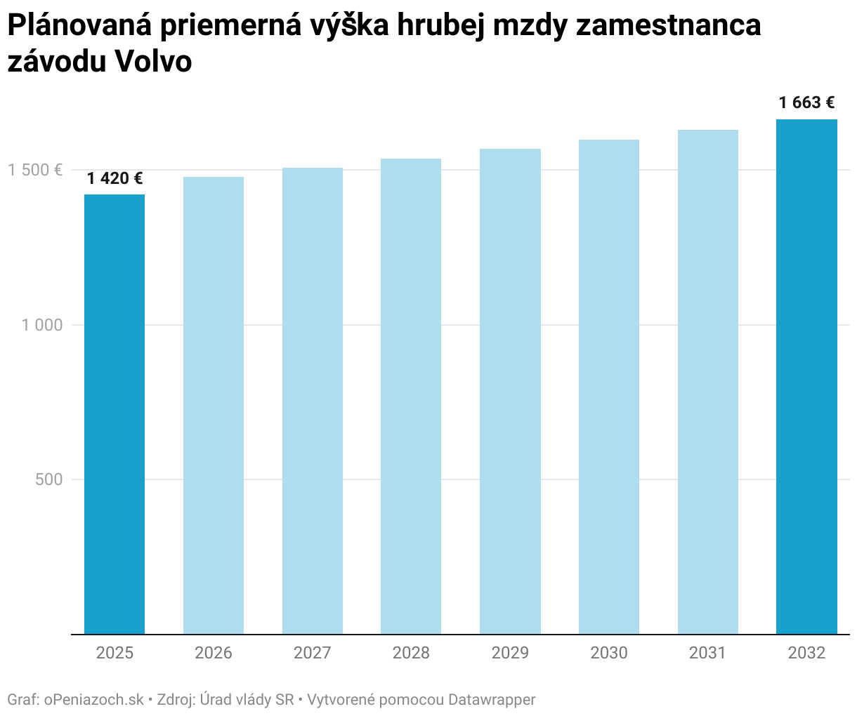 Plánovaná priemerná výška hrubej mzdy zamestnanca závodu Volvo