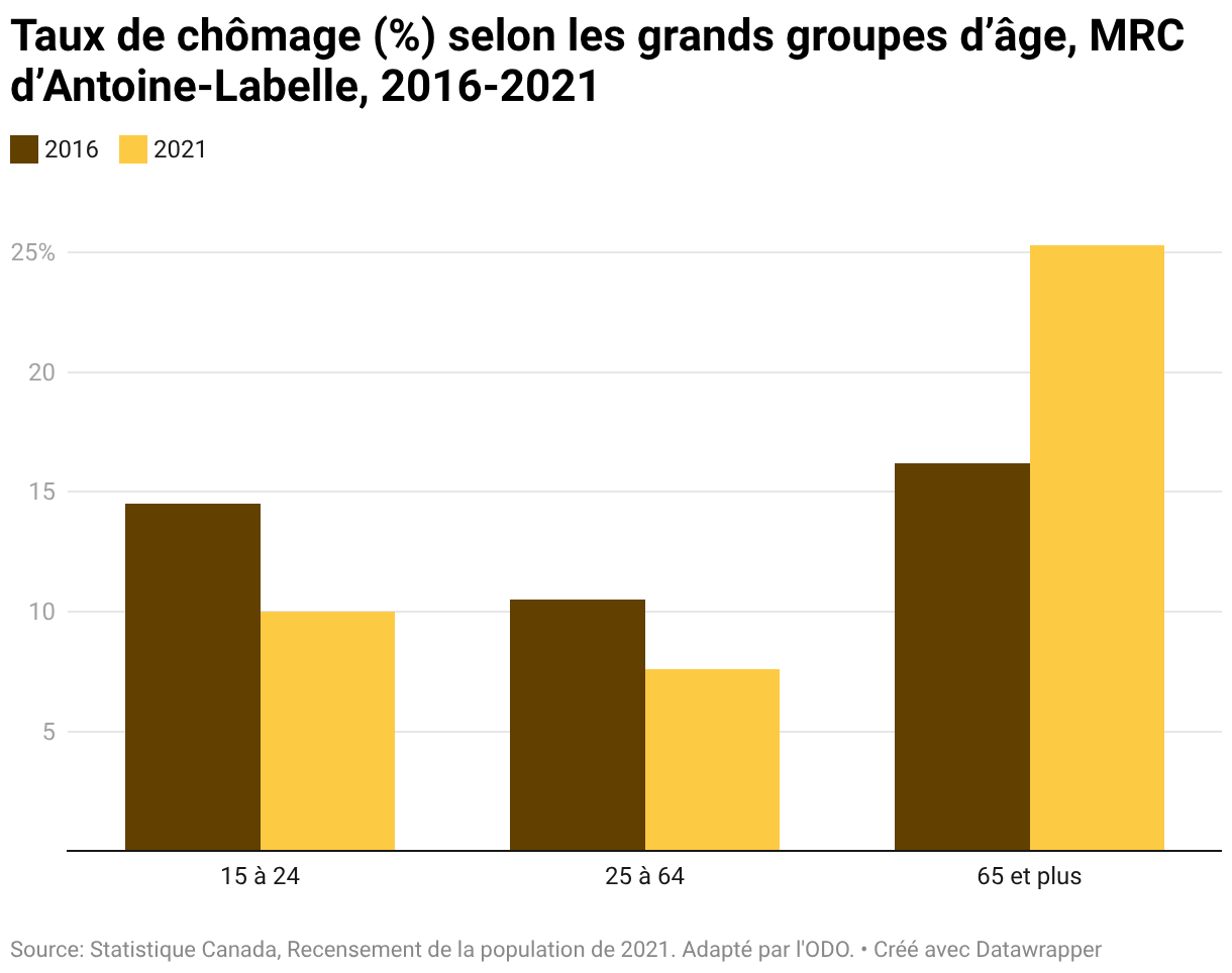 Taux de chômage (%) selon les grands groupes d’âge, MRC d’Antoine-Labelle, 2016-2021